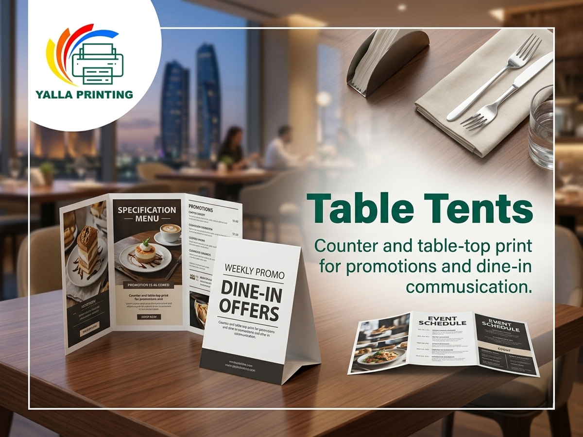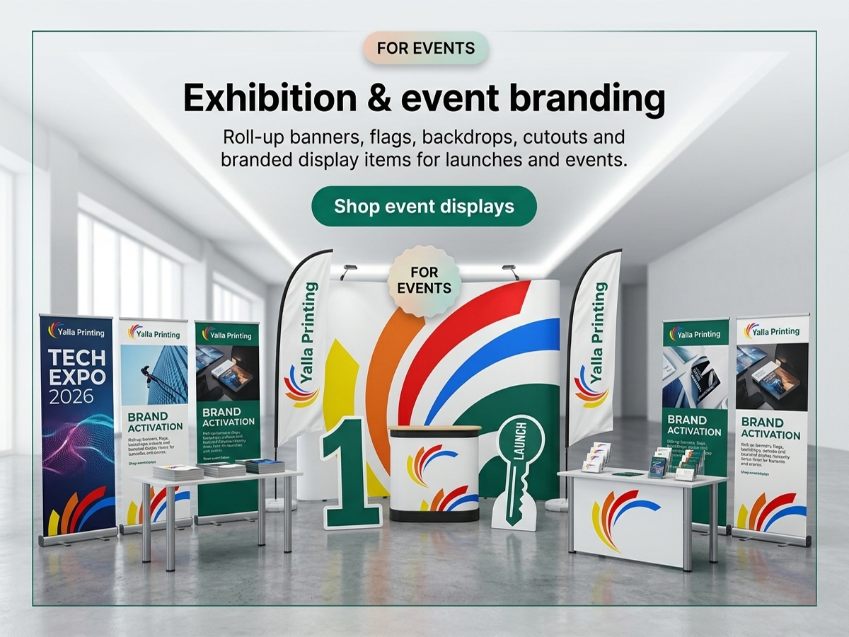 Yalla Printing helps businesses, restaurants, event organizers and brands order print online with confidence. With free design support, proof approval before print and UAE-wide delivery, we make custom printing easier, faster and more reliable.